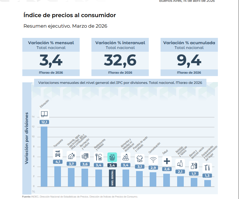 La inflación del mes de Marzo, según el INDEC fue del 3.4%